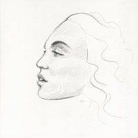Zwart wit tekening van een vrouwengezicht. Portret van een vrouw van de zijkant gezien.