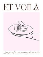Eenvoudige en elegante combinatie van illustratie, typografie en pastelkleuren, thema gebak/gebak, in het Frans