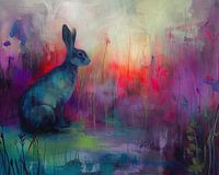 Details: konijn, neon, abstract, schilderij, flora, silhouet, dier, natuur, magisch, modern