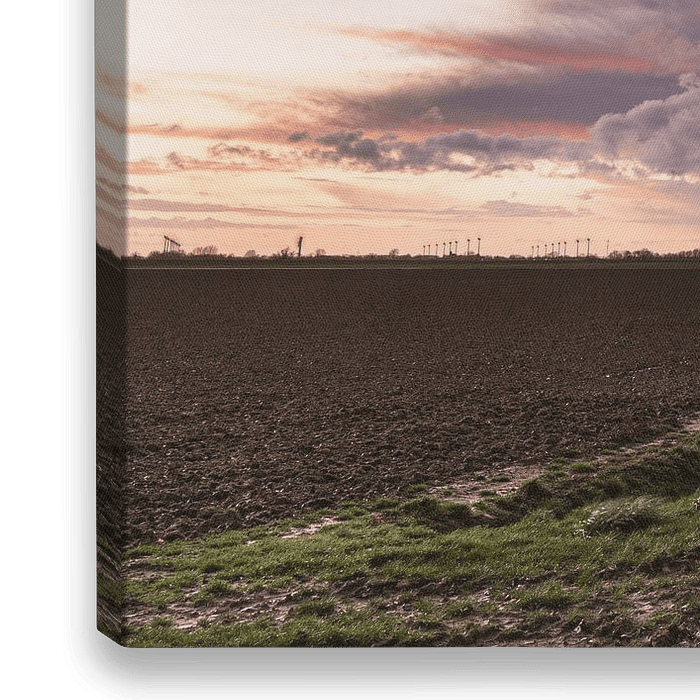 Boven de polder pakken zich extreem donkere wolken samen, er is regen op komst. De zon verdwijnt net achter de horizon. Dat leverde deze prachtige kleuren op.