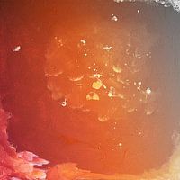 Abstract acrylschilderij in rood, oranje en grijs