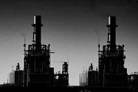Multi-fuel energie opwekking. Donker Zwart-wit beeld van een industrie, fabriek, voor de productie van energie. Locatie Eemshaven.