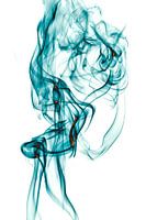 Rookslierten van brandend wierook, tegen een witte achtergrond, abstract weergegeven.