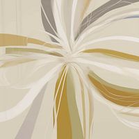 Dynamisch abstract motief, waarbij vloeiende lijnen en scherpe punten samenkomen in een explosie van beweging. Het kleurenpalet bestaat uit subtiele aardetinten, zoals beige, goud en taupe, gecomplementeerd met accenten van wit en donkere schaduwen. De manier waarop de lijnen vanuit een centraal punt uitstralen, kan worden…