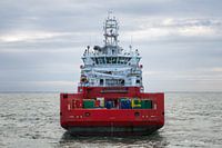 Offschore supplier Energy Partner op de ankerplaats van de Westereems. Van achteren gefotografeerd.
