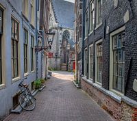 Dit werk toont de Enge kerksteeg. De steeg verbindt de Zeedijk en het Oudekerkplein in Amsterdam. Al in de 17e eeuw is de steeg al op schilderijen te zien. Links is een prachtige straatlantaarn te zien getooid met een goudkleurige kroon. De huizen aan de linkerkant van de steeg zijn wit geschilderd, de panden aan de rechterkant donkerbruin. Natuurlijk kan en eenzame fiets, geparkeerd tegen de muur niet ontbreken. Op de achtergrond is een gedeelte van de Oude kerk zichtbaar. Het totaalbeeld geeft een schilderachtig beeld van de binnenstad van Amsterdam.