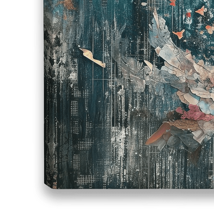 Details: engel, vrouw, vleugels, kleurrijk, artistiek, expressief, modern, portret, vlinders, verweerd