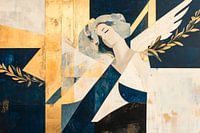 Elegantie en harmonie komen samen in deze stijlvolle compositie. De zachte lijnen en gouden accenten geven de kamer een vleugje luxe. De dynamische houding van de figuur en de diepblauwe tinten creëren een rustgevende sfeer. Ideaal voor de woonkamer om een uitnodigend en inspirerend middelpunt te creëren.