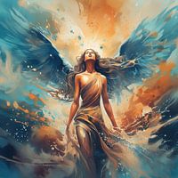 een prachtige afbeelding van een engel. Digitale kunst - De kunstenaar heeft deze afbeelding gemaakt met behulp van kunstmatige intelligentie technologie.
