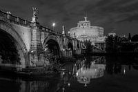 Engelenbrug en Castel Sant'Angelo te Rome zwart wit.
