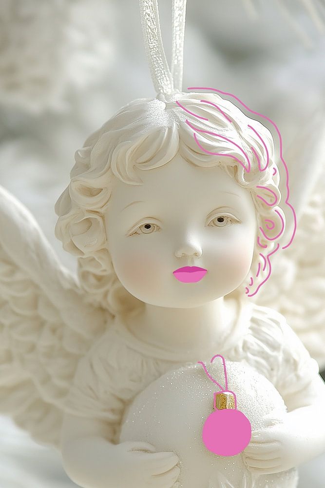 Roze lijnen, lippen en kerstbal geven het een artistieke twist.