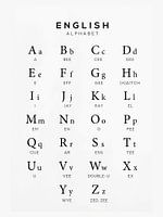 Deze moderne taalkaart bevat alle 26 tekens van het Engelse alfabet in hoofdletters en kleine letters, samen met een uitspraakgids.