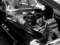 Zwartwitte versie van de motor van de Oldtimer Buick.