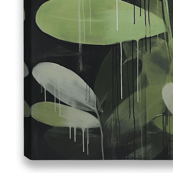 Dit acrylschilderij is een gedurfde en grootse creatie, waarbij druipende bladeren in groen, goud en zwart de hoofdrol spelen. Het kunstwerk ademt een enigmatische tropische sfeer uit, waarbij de transparante lagen van de verf een intrigerend dieptegevoel creëren. In deze compositie ontmoeten de metropool en de natuur elkaar op…