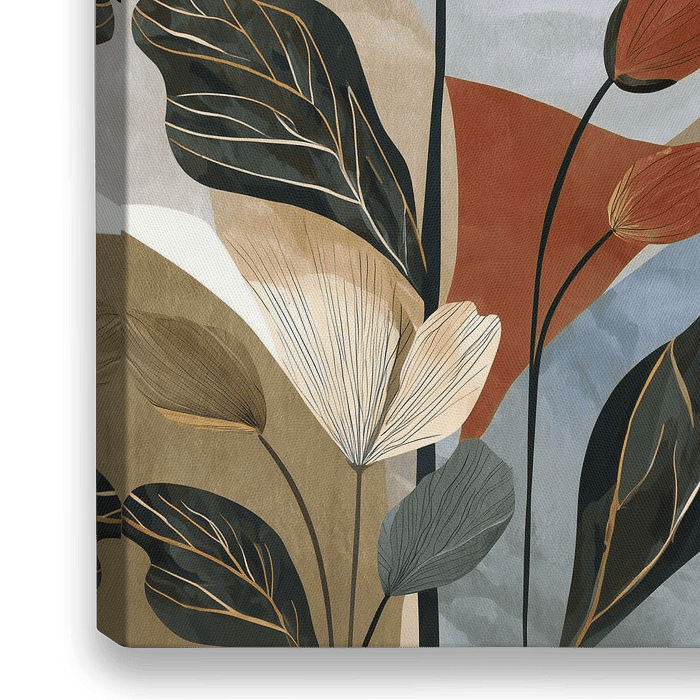 Botanische fantasie illustratie in aardetinten met het silhouet van een man die geniet van de natuur.