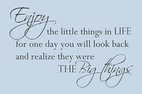 Dit typografische wanddecoratiestuk met de tekst “Enjoy the little things” is een stijlvolle en rustgevende toevoeging voor elke ruimte. De zachtblauwe achtergrond straalt kalmte en sereniteit uit, terwijl de donkergrijze letters een elegant en tijdloos contrast bieden. De krachtige, eenvoudige boodschap nodigt uit om bewust stil te staan bij de kleine, waardevolle momenten in het dagelijks leven, een mooie herinnering om dankbaar te zijn voor wat vaak vanzelfsprekend lijkt.