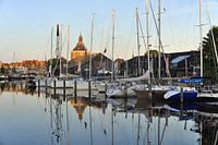 In de avondzon is de haven van Enkhuizen betoverend mooi. De Drommedaris vangt precies de laatste zonnestralen.