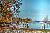 Terwijl de zon net onder de horizon verdwenen is, komt de volle maan op boven de Buitenhaven in Enkhuizen. Het maanlicht zorgt, samen met de bomen in herfstkleur,en voor een betoverende sfeer.