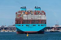 Enorm containerschip in de Rotterdamse haven op de Tweede Maasvlakte.