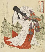 Ensei (ca. 1828-1830) prent van Utagawa Kuniyoshi. De hier afgebeelde vrouw stelt Ensei (Yan Qing, in het Chinees) voor, een van de jongste van de 108 helden - een goed uitziende man met een blanke huid die uitblonk in muziek en dans. Haar witte gewaad met wijde mouwen en gelakte hoed zijn typische kledij van shirabyøshi, vrouwelijke zang- en dansartiesten tijdens tempel- en hoffeesten in de 12de en 13de eeuw.