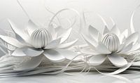 Abstracte papieren lotusbloemen in gebroken wit en licht grijs tinten.