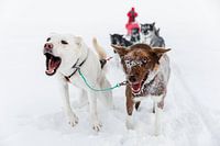 Tijdens een tocht zijn de huskies soms niet te houden. Ze willen zo graag hun energie kwijt en de slee voorttrekken, dat ze helemaal uit hun dak gaan als de slee even stilstaat.