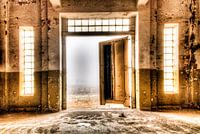 HDR-opname gemaakt in leegstaande wasserij van defensie in Woerden. Dit is de deur op de eerste etage waar het wasgoed naar binnen gehesen werd.