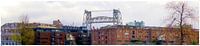 Vanaf de Rotterdamse jachthaven een blik op de hefbrug en het Entrepotgebouw