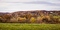 Met dauw bedekt weiland op een koude herfstochtend in het Zuid-Limburgse Heuvelland tussen Mechelen en Epen (Nederland)