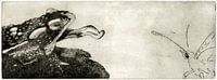 Een ets van een situatie tussen jager en gemakkelijke prooi zonder uitweg.