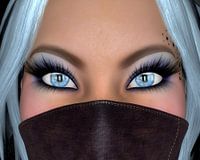 Een 3d digitaal beeld van een vrouw die het dragen van een gezichtsmasker en het onthullen van mooie ogen