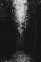Er is licht aan het eind van de tunnel, dat dacht ik toen ik dit bospad fotografeerde. Het donkere bos en haar schaduwen waren in groot contrast met het daglicht dat van boven af toch doordrong.
