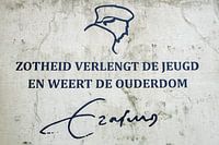 Zotheid verlengt de jeugd en weert de ouderdom. Lachen om gekte is gezond. Lof der Zotheid is het bekendste werk van Desiderius Erasmus Roterodamus. In dit werk drijft Erasmus als zot de spot met iedereen. Erasmus was hiermee feitelijk de eerste Nederlandse cabaretier. Deze muutschildering kun je vinden in Gouda. Deze foto is gemaakt in Januari 2025