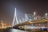 De Rotterdamse erasmusbrug met op de achtergrond het nieuwe gebouw "de Rotterdam"