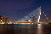 In december is alles extra sfeervol buiten. De lichtjes staan aan waardoor het al snel gezellig oogst. Zo ook in Rotterdam bij de Erasmusbrug. Het vooraanzicht over het water.