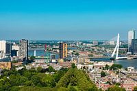 Een overzicht van de stad Rotterdam vanaf de Euromast met de Erasmusbrug centraal in beeld.