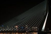 Rotterdam Erasmusbrug bij nacht en volop verlicht op een zwarte achtergrond.