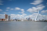 Erasmusbrug met een lange sluitertijd gemaakt waardoor er een glad wateroppervlak ontstaat en de wolken iets vervagen
