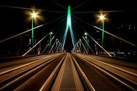 Erasmusbrug in Rotterdam groen en wit verlicht in de keuren van Rotterdam. Gefotografeerd, midden in de nacht.