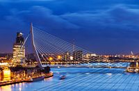 Prachtige opname van de Erasmusbrug in Rotterdam tijdens het blauwe uur