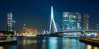 Deze avondfoto is gemaakt vanaf de Leuvehavenbrug waar je een schitterend uitzicht hebt op de Erasmusbrug, De Rotterdam, Montevideo en de Maastoren.