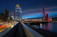 Erasmusbrug in Rood, zicht op de Kop van Zuid in Rotterdam van Raoul Baart