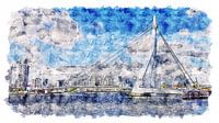 Digitaal aquarel van de Erasmusbrug in Rotterdam (Zuid-Holland, Nederland).