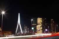 In de nacht is alles extra sfeervol. Door een lange sluitertijd krijg je mooie strepen van de passerende auto's. Ook bij de Erasmusbrug is dat erg mooi.