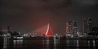 Erasmusbrug in een rode gloed, wachtend op het vuurwerk.