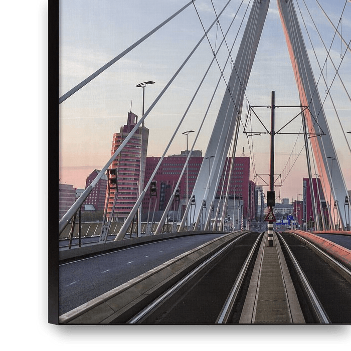 Zonsopkomst midden op de Erasmusbrug in Rotterdam