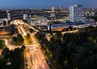 Het Erasmus MC gefotografeerd vanaf de Euromast, iets na zonsondergang.