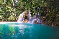 Het eerste niveau van de Erawan-watervallen. De Erawan-watervallen zijn verspreid over zeven niveaus. In de watervallen kun je heerlijk zwemmen in kristalhelder water. Zo midden in de jungle, staand het water van de waterval op je neer laten komen, geeft een magisch gevoel.