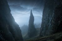 Een tafereel regelrecht uit "The Lord of the Rings". Deze formatie wordt "The Needle" genoemd; een moeilijk te bereiken unieke plek op Isle of Skye in Schotland. Vooral wanneer het zo hard regent als wanneer deze foto genomen is in de herfst van 2019.