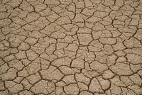 Erg droge gebarsten aarde, gescheurd door uitdroging, vormt een fraai achtergrond beeld in beige.